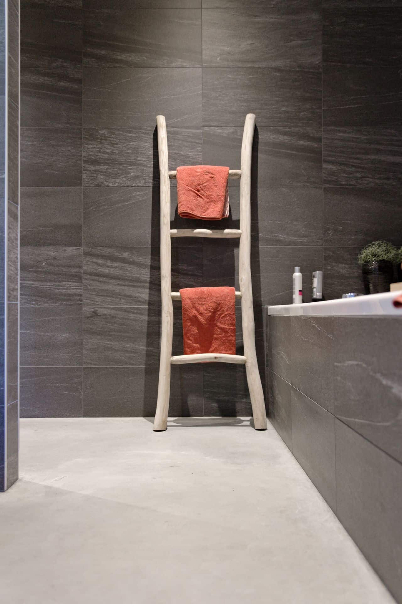 6. Betonlook in de badkamer met gemengd stucwerk- en tegelwerk