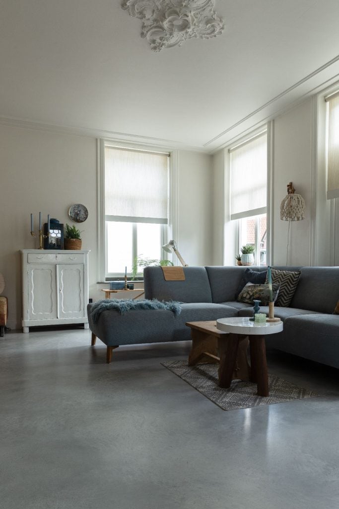 Wil jij je woonkamer luxe en eenvoudig inrichten? Dan is een naadloze vloer de perfecte basis. Combineer een lichte betonvloer met linnen gordijnen en houten accenten voor een rustige sfeer. Of kies juist voor een donkere betonlookvloer met strakke meubels voor een modern resultaat.