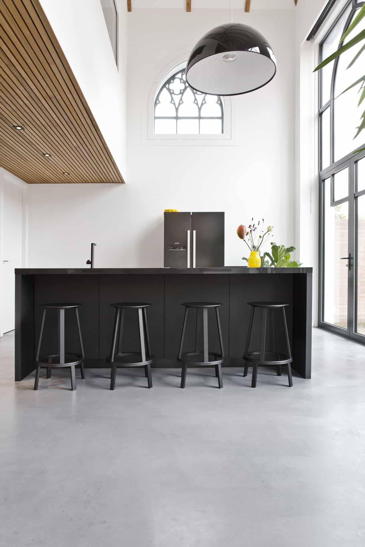 De Groenlandkerk uit 1891. In deze kerk in Edam is in 2015 voor het laatst de mis gehouden. En nu 5 jaar later is het een waanzinnige woning! Een écht ‘architectonisch hoogstandje’. Wat doe je met zo’n grote open ruimte? Hoe creëer je sfeer in huis? Hoe houd je zo’n enorm pand behaaglijk warm? Een aantal vragen die de opdrachtgevers vooraf hadden. Maar dit is het eindresultaat! Alles werd uit de kerk gehaald, behalve de muren, een deel van de constructie en gelukkig die fantastische ramen. Om ook een verdieping te maken werd er als het ware een ‘doos’ in de woning geplaatst. Wel met glas om het zo ruimtelijk mogelijk te houden. Op deze manier kijk je ook van de verdieping meteen naar de begane grond.