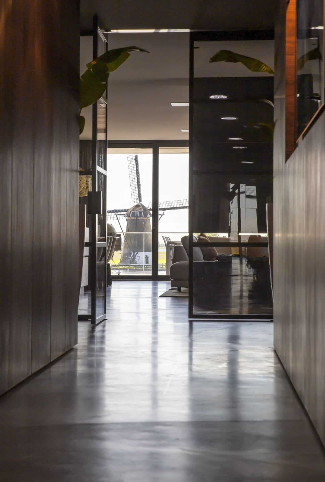Dit project is dan misschien geen groot renovatie project, maar zeker een uniek project. Een vrij nieuw en luxueus appartement aan de jachthaven van Warmond. Het uitzicht is echt om van te dromen. Met uitzicht op weilanden, een molen én jachthaven. En daarnaast ook nog eens stad en strand dichtbij. De gevlinderde betonvloer in dit appartement zorgt voor verbinding tussen de verschillende ruimten. Beton zorgt voor leven in dit moderne interieur.