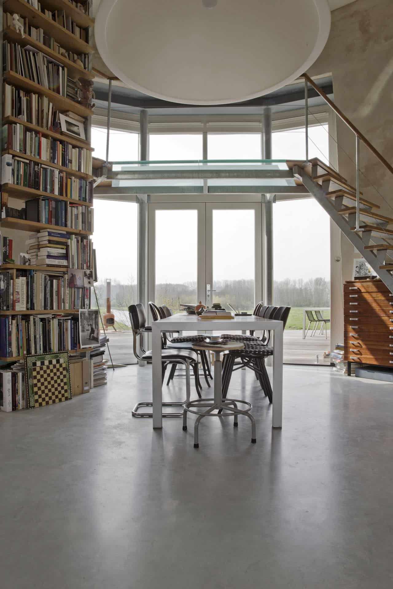 Een rond pand. Lastig om in te richten zou je denken. Nou, niet voor de bewoners van deze oude watermolen in Bleskensgraaf. Want wat hebben ze er een prachtig plaatje van weten te maken! Natuurlijke en pure materialen waren een must. Zo gezegd, zo gedaan. Natuurlijke wandpleister, veel hout en natuurlijk niet te missen: gevlinderd beton. En weet je wat zo tof is? Je kunt in het bed & breakfast gedeelte overnachten in deze watermolen zonder wieken. Met uitzicht op weilanden kom je helemaal tot rust. Breakfast: ’tussen water en wind’.