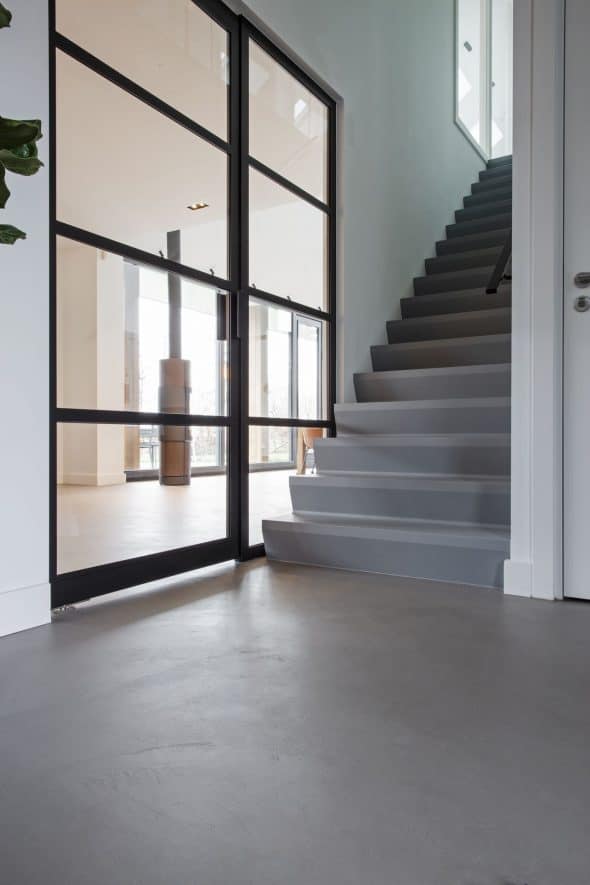De basis van de PU gietvloer is het kunststof polyurethaan. Een licht elastisch materiaal dat vrij flexibel is voor een betonlook vloer. De PU gietvloer is heel goed te combineren met vloerverwarming, maar ook zonder vloerverwarming voelt deze naadloze vloer niet koud aan. De vloer is onderhoudsvriendelijk en doordat hij maar een paar millimeter dik is, kan hij ook heel goed op een verdiepingsvloer gelegd worden. Daarnaast is de PU gietvloer ook geschikt voor in de badkamer. Een heel praktische vloer dus die in alle RAL- en NCS- kleuren te verkrijgen is, uitgezonderd metallic en parelmoerkleuren.
