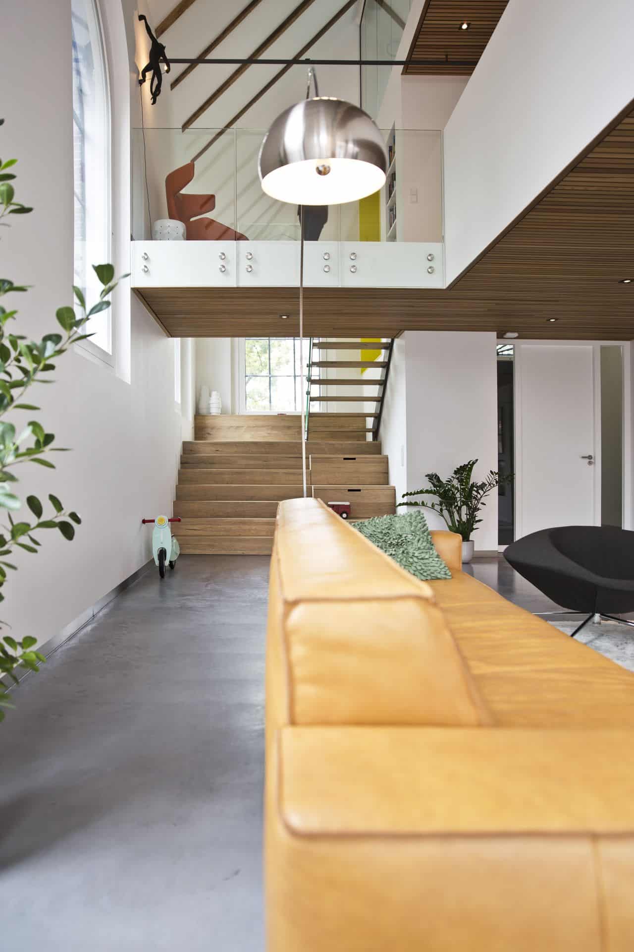 - Een betonvloer zorgt voor rust in de ruimte zeker als je graag met een print of kleur werkt