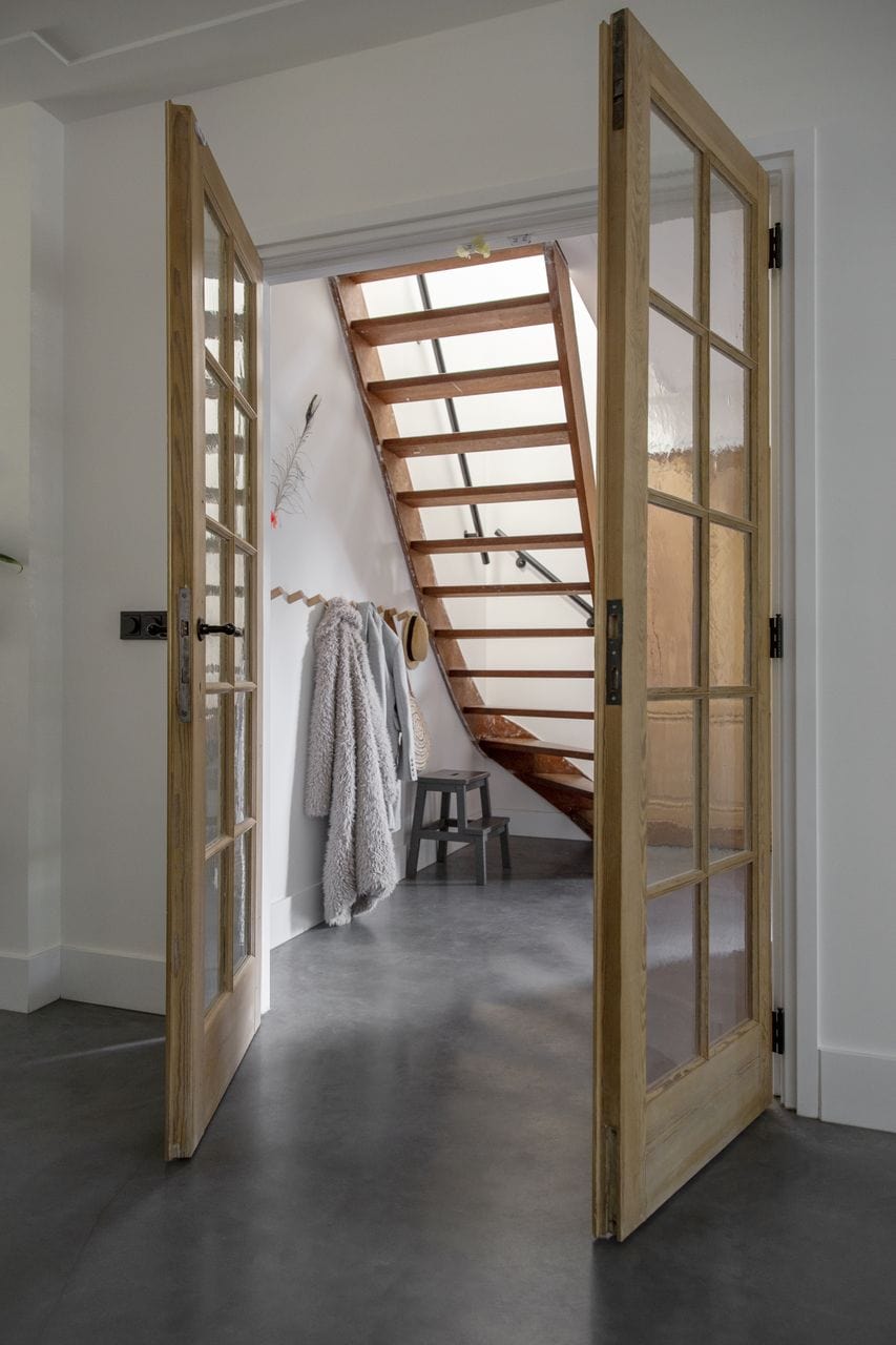 “We wisten eigenlijk al dat we heel graag een betonvloer wilden”, vertelt Nina. “We hebben een huis gekocht, alles gestript en weer helemaal opgebouwd. Qua interieur kozen we voor hele strakke, witte muren en voor een betonvloer.”