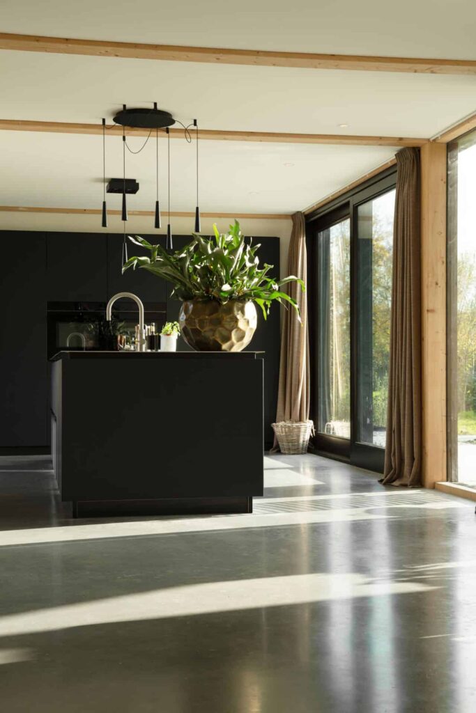 Gevlinderde betonvloer en betonnen terras in Zeist