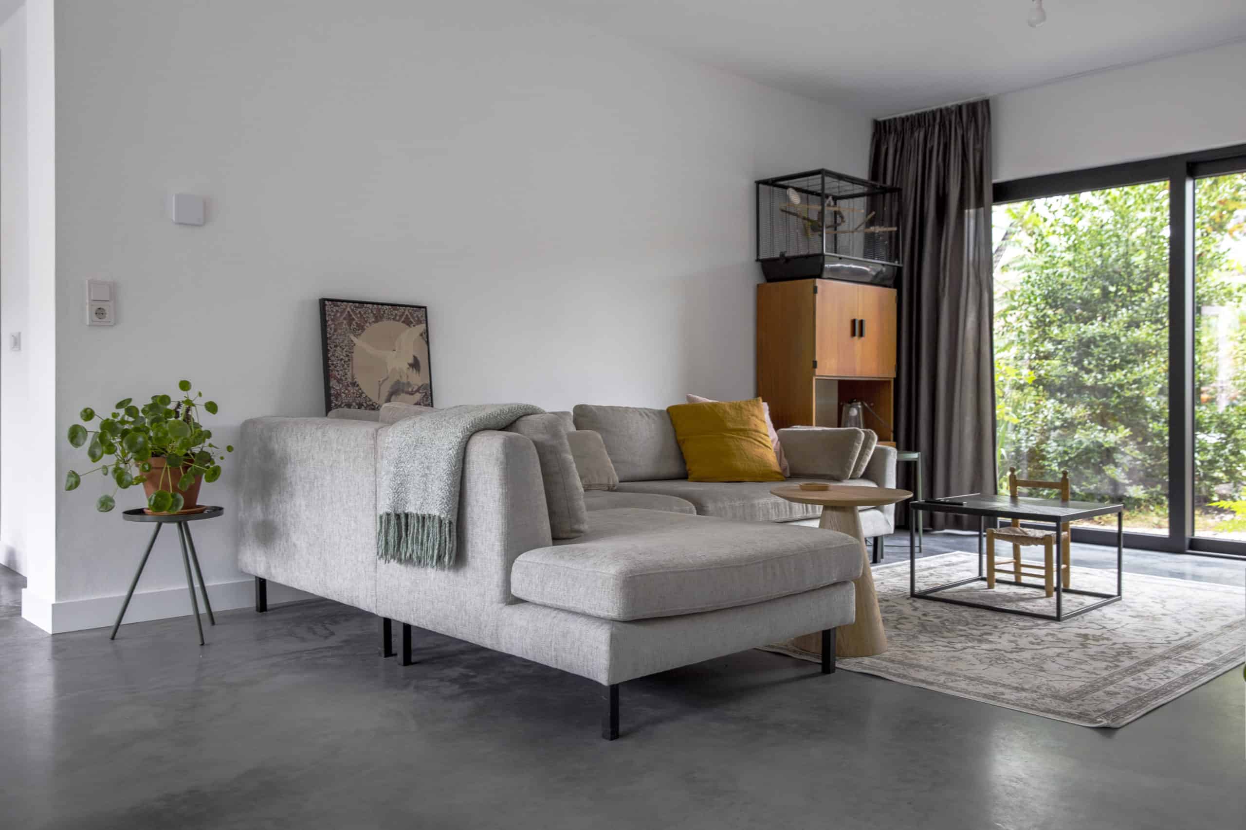 Een beton ciré vloer wordt gesmeerd en afgelakt. Hierdoor heeft deze betonlook vloer soort een robuuste structuur en is hij 100% vuil- en vloeistofafstotend. Ook is deze vloer in iedere woonstijl toe te passen, doordat je kan kiezen uit iedere RAL- en NCS-kleur. Hierbij kun je ook nog eens kiezen hoe druk of rustig je de uitstraling van jouw beton ciré vloer wil laten worden.