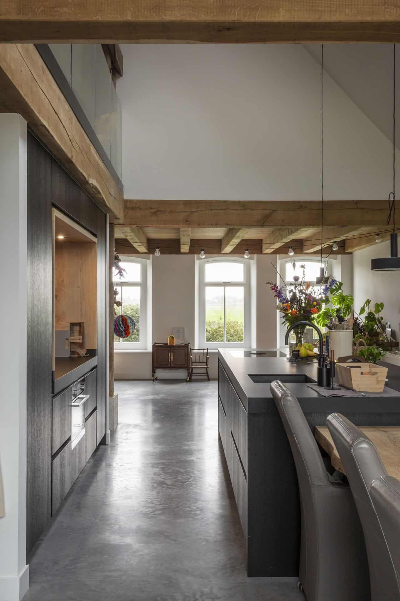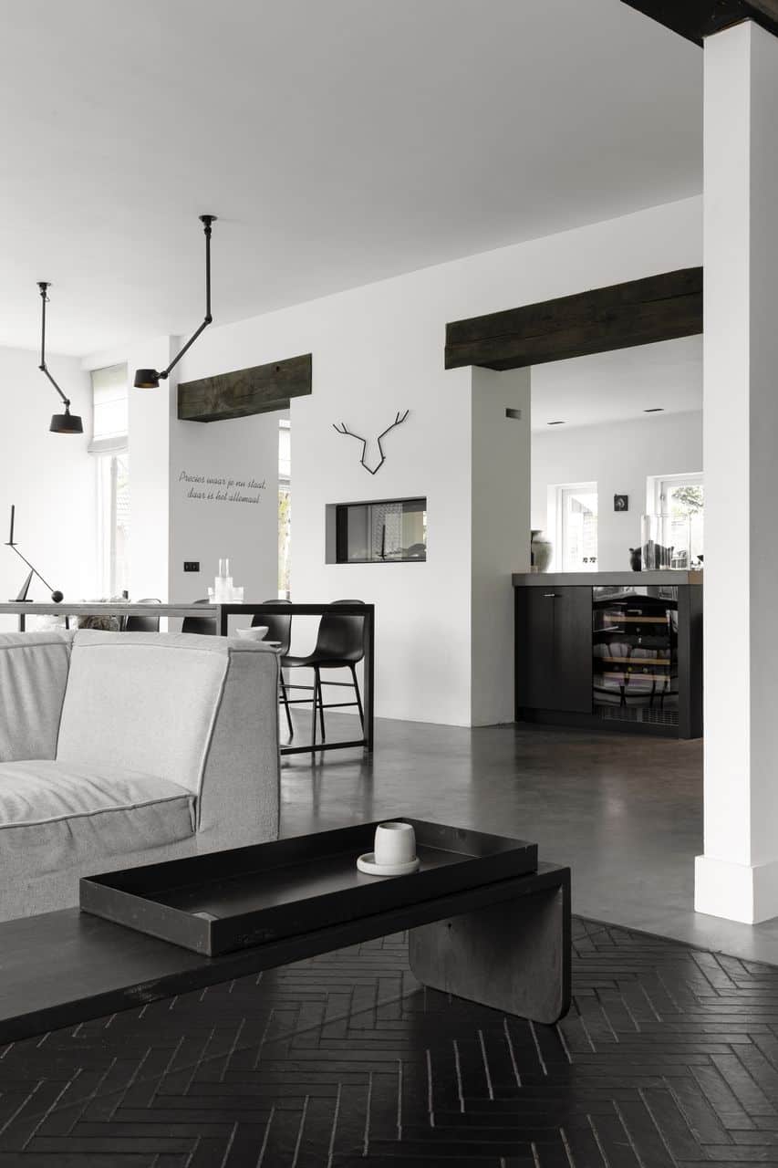 De unieke en levendige uitstraling van een gevlinderde betonvloer past perfect in een industrieel interieur! Op onderstaande foto’s is een voorbeeld te zien van een mix van verschillende interieurstijlen, waarbij landelijk en industrieel gecombineerd is.